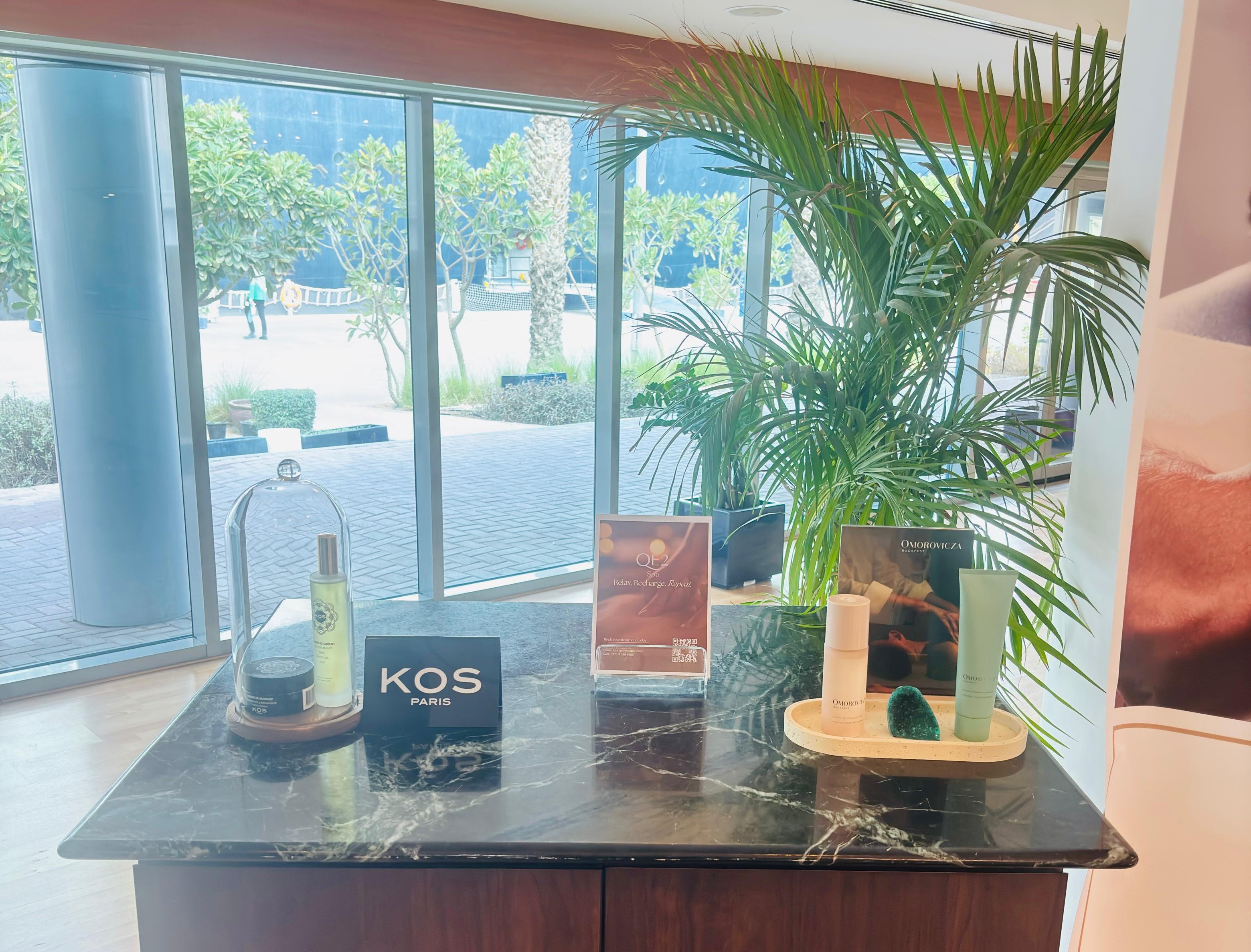To elevate brand visibility and recognition, a curated selection of Omorovicza and KOS Paris products was prominently displayed within the QE2 Reception Area. The presentation was designed to capture the attention of guests upon arrival, creating a luxurious first impression while reinforcing the premium positioning of both brands.